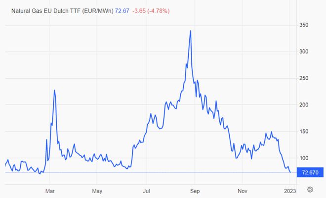 圖:歐洲天然氣價(jià)格走勢(shì)(€/MWh)