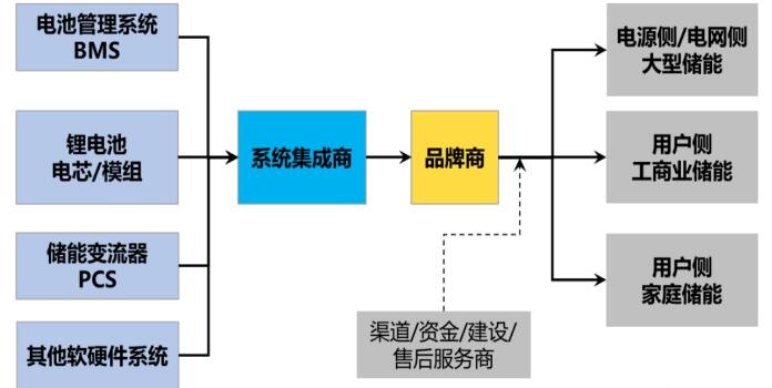 一是獨立的品牌商,如上所述,主要負責產(chǎn)品、供應鏈、品牌和渠道等,通過向系統(tǒng)集成商采購或者尋求代工的方式來實現(xiàn)產(chǎn)品制造。這類主要是擁有先天品牌和渠道優(yōu)勢而又不具備鋰電產(chǎn)業(yè)制造能力和資源的光伏系品牌商。