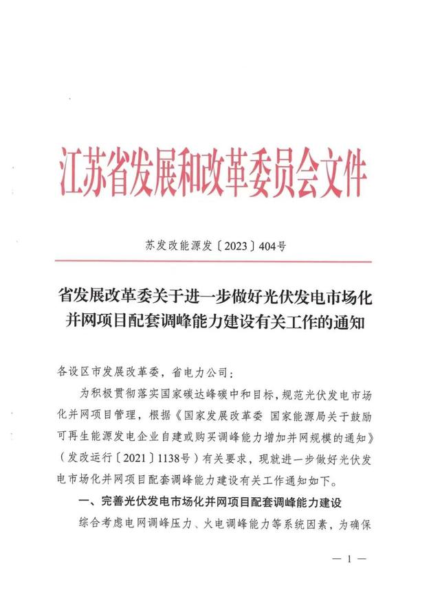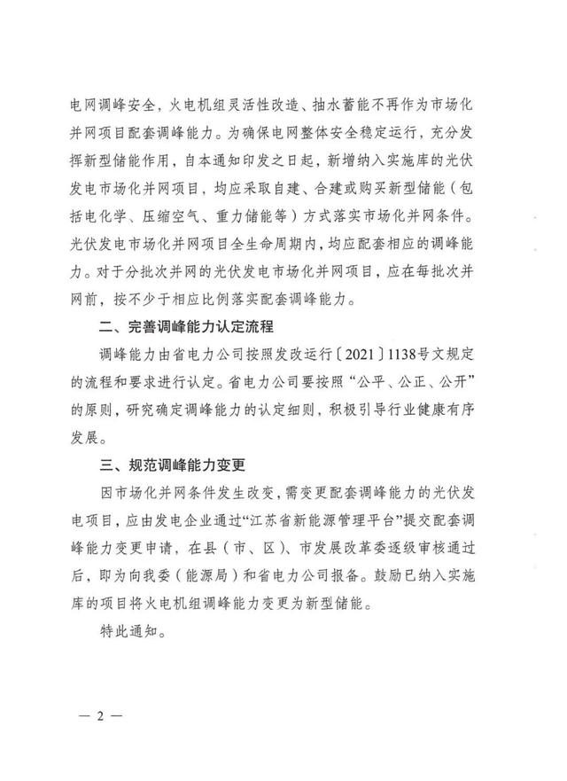 4月17日,江蘇省發(fā)展改革委發(fā)布《關(guān)于進(jìn)一步做好光伏發(fā)電市場(chǎng)化并網(wǎng)項(xiàng)目配套調(diào)峰能力建設(shè)有關(guān)工作的通知》(文件原文附后),文件提出: