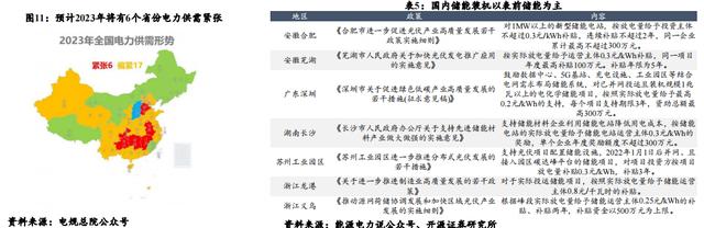 2023年國內(nèi)電力供需關(guān)系預(yù)計仍將緊張。在全國經(jīng)濟(jì)平穩(wěn)復(fù)蘇的大背景下,全社會用電量有望持續(xù)增長,國內(nèi)電力供需關(guān)系預(yù)計將呈現(xiàn) 相對緊張的狀態(tài)。在迎冬度夏的用電高峰期,國內(nèi)部分地區(qū)缺電問題預(yù)計會地方企業(yè)的生產(chǎn)生活造成不利影響。根據(jù)電規(guī)總院預(yù)測, 2023年全國將有6個省份電力供需形勢緊張,17個省份電力供需偏緊。
