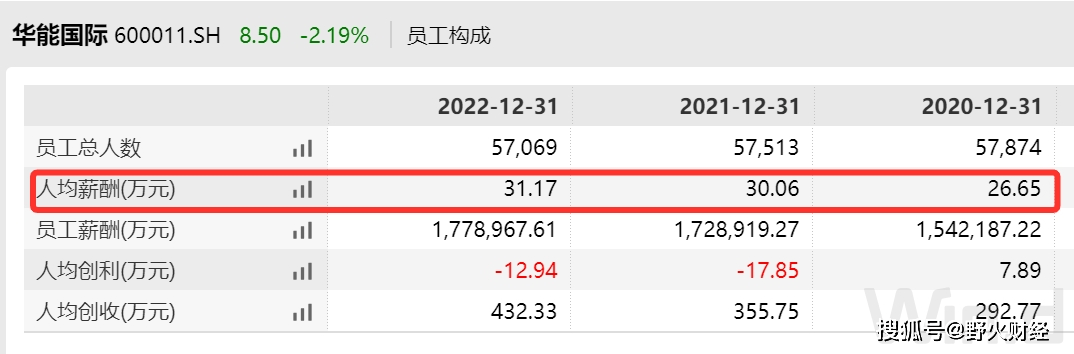 華能國際薪酬總額大約178億元,人均薪酬超過31萬元,比2021年的30萬元又增加1萬元;2020年人均薪酬大約26.7萬元。