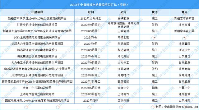 全釩液流電池具有響應快、安全環(huán)保、壽命長、規(guī)模大等特點,適合長時儲能,市場發(fā)展空間廣闊。2022年,我國全釩液流電池儲能項目中,建成項目5個,在建項目14個。