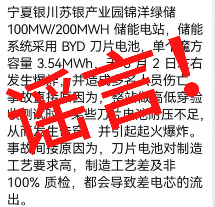 對此,比亞迪儲能回應(yīng)稱,經(jīng)核實,該項目從未發(fā)生過起火、爆炸和人員死亡事故,網(wǎng)傳信息系惡意拼接的謠言。