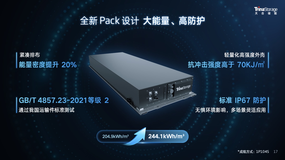 5MWh儲能系統(tǒng)在降本增效上具有突出優(yōu)勢,如更低的度電成本、更優(yōu)的組合方案,標(biāo)準(zhǔn)尺寸下更高的能量密度。同時,也面臨著一些挑戰(zhàn),如電芯一致性與電池簇間能量均衡管理,更大Pack設(shè)計下對于結(jié)構(gòu)、散熱、安全設(shè)計的挑戰(zhàn)以及約40噸重量運輸?shù)碾y題。天合儲能著眼當(dāng)前市場需求,創(chuàng)新提出天合方案。