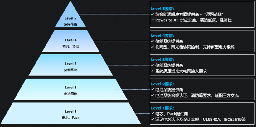 第一層是電芯和PACK提供商,主要聚焦產(chǎn)品性能提升和認(rèn)證的準(zhǔn)入,通過海外市場認(rèn)證,就可以供應(yīng)給系統(tǒng)集成商;第二層是電池系統(tǒng)提供商,聚焦交流系統(tǒng)的適配和產(chǎn)品標(biāo)準(zhǔn)化,在通過認(rèn)證之外,還要做好安全和消防等方面的設(shè)計,主要面向還是系統(tǒng)集成商;第三層次是儲能系統(tǒng)供應(yīng)商,需要在電網(wǎng)準(zhǔn)入、后期運維兩個方面滿要求。