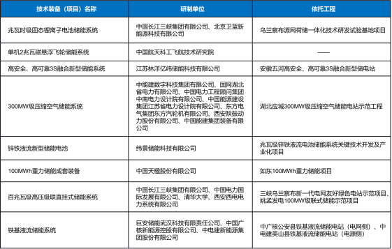 圖:第三批能源領(lǐng)域首臺(tái)(套)重大技術(shù)裝備(項(xiàng)目)名單——新型儲(chǔ)能