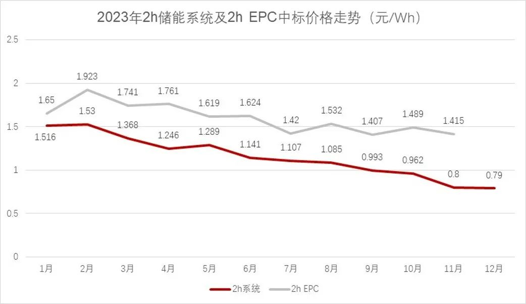 短短一年時間,儲能系統(tǒng)價格已經(jīng)幾近腰斬。來自中關(guān)村儲能產(chǎn)業(yè)技術(shù)聯(lián)盟(CNESA)的統(tǒng)計,到2023年年末,2小時儲能系統(tǒng)中標(biāo)均價已經(jīng)跌至0.79元/Wh,較年初下降48%。而這還僅僅是平均價,一些企業(yè)的報價還在平均價格之下。