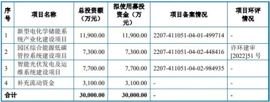 許昌智能成立于2009年,脫胎與許繼集團(tuán),目前主營業(yè)務(wù)為智能配用電產(chǎn)品、新能源產(chǎn)品和系統(tǒng)的研發(fā)、設(shè)計(jì)、組裝、銷售和服務(wù),以及電力工程總承包業(yè)務(wù)。 根據(jù)許昌智能2024年1月15日披露的招股書顯示,公司擬募集資金30,000.00萬元,計(jì)劃用于新型電化學(xué)儲能系統(tǒng)產(chǎn)業(yè)化建設(shè)項(xiàng)目、園區(qū)綜合能源低碳管控系統(tǒng)建設(shè)項(xiàng)目、智能光伏發(fā)電及運(yùn)維系統(tǒng)建設(shè)項(xiàng)目、補(bǔ)充流動資金。