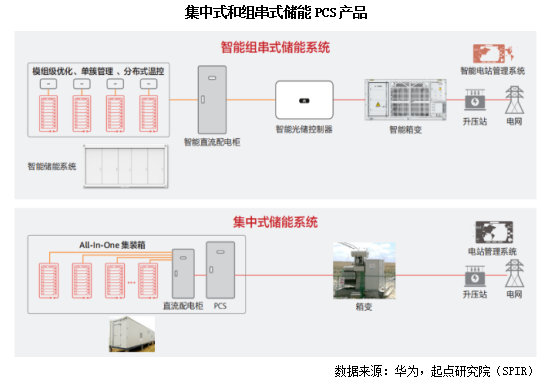 儲(chǔ)能PCS產(chǎn)品可以分為集中式、組串式、微型逆變器、儲(chǔ)能變流器及一體機(jī)等類型。根據(jù)儲(chǔ)能PCS的應(yīng)用場(chǎng)景可以分為組串式和集中式兩大類,其中組串式主要應(yīng)用于中小型儲(chǔ)能系統(tǒng),集中式應(yīng)用于大型儲(chǔ)能系統(tǒng),產(chǎn)品形態(tài)適應(yīng)源/網(wǎng)/荷側(cè)多種場(chǎng)景。不同應(yīng)用場(chǎng)景對(duì)于儲(chǔ)能PCS的功能以及性能參數(shù)等的需求差異較大,因此針對(duì)不同的場(chǎng)景需要應(yīng)用不同技術(shù)類型的儲(chǔ)能PCS。
