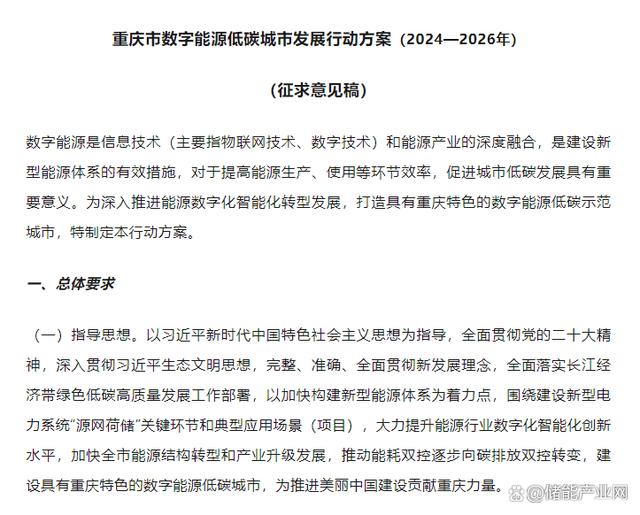 日前,重慶經信委印發(fā)《重慶市數(shù)字能源低碳城市發(fā)展行動方案(2024—2026年)(征求意見稿)》。文件提出,到2026年,全市數(shù)字能源低碳城市發(fā)展取得明顯成效,建設一批具有示范帶動作用的標志性項目。完成1000個以上用戶側光伏和儲能、虛擬電廠、綠色工廠、綠色交通、綠色建筑等領域示范項目,戶用光伏150萬千瓦,用戶側儲能規(guī)模100萬千瓦/200萬千瓦時。