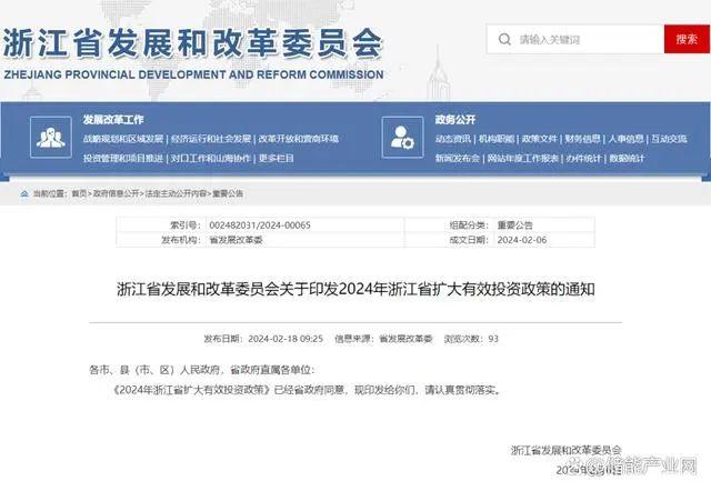 2月18日,浙江發(fā)改委官網發(fā)布關于印發(fā)2024年浙江省擴大有效投資政策的通知。