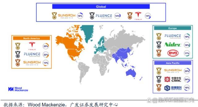 根據(jù)WoodMackenzie數(shù)據(jù),2022年北美前三大集成商分別為特斯拉、Fluence、陽光電源,市場(chǎng)份額分別為23%、22%、13%,頭部集成商份額進(jìn)一步提升。