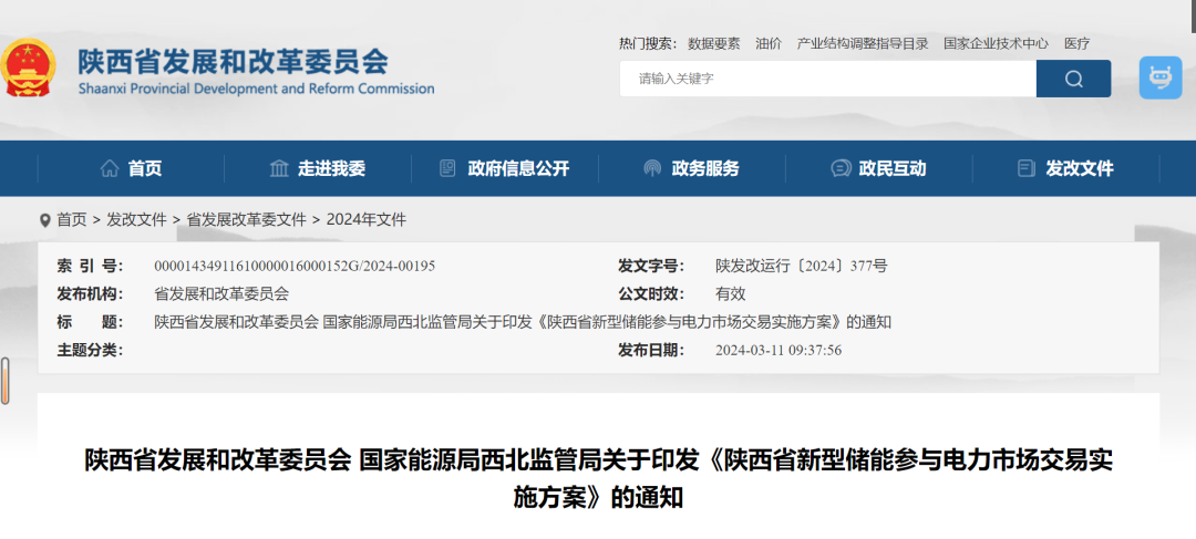 陜西省發(fā)展和改革委員會 國家能源局西北監(jiān)管局關于印發(fā)《陜西省新型儲能參與電力市場交易實施方案》的通知