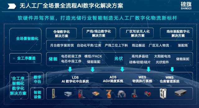 在此靠山下,磅旗科技踴躍摸索創(chuàng)新,使用構(gòu)建無人工場AI數(shù)字化,打造了自立可控的“軟件+硬件+數(shù)據(jù)+算法”云管端邊一體化處理方案,推出多品類AGV/機(jī)械人夾雜調(diào)理系統(tǒng)ADS、企業(yè)級(jí)無人工場數(shù)字中臺(tái)系統(tǒng)LDS,可能助力各AGV實(shí)現(xiàn)數(shù)據(jù)互通、協(xié)同功課,買通各工序過程的系統(tǒng)卡點(diǎn)和設(shè)施盲點(diǎn),賦能儲(chǔ)能產(chǎn)業(yè)智能制作數(shù)字化周全晉級(jí)。