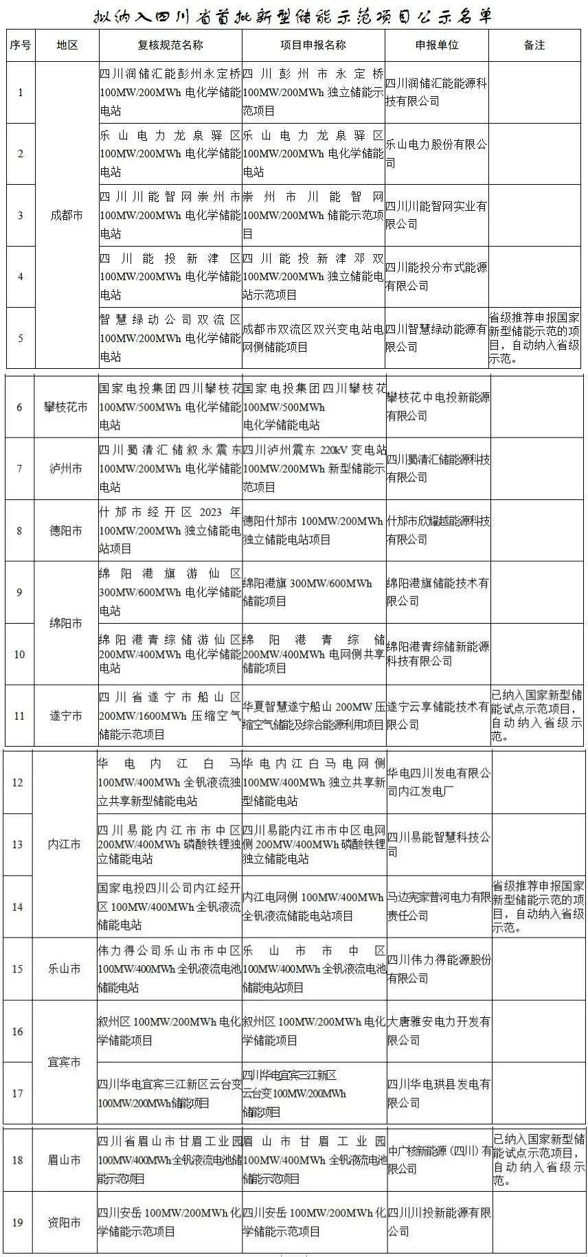 附:擬納入四川省首批新型儲(chǔ)能示范項(xiàng)目公示名單