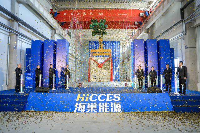 簽約儀式后,與會(huì)嘉賓為首臺(tái)海巢能源(陽原)儲(chǔ)能系統(tǒng)產(chǎn)品下線揭幕并實(shí)地參觀了生產(chǎn)車間。