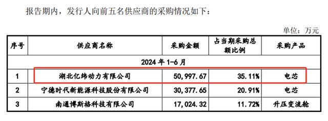 當(dāng)然,海博思創(chuàng)也早就意識(shí)到這一點(diǎn),從實(shí)際情況來看,其已經(jīng)拓展了新的電芯供應(yīng)商,包括億緯鋰能、鵬輝能源、衛(wèi)藍(lán)新能源、蘭鈞新能源、欣旺達(dá)等。數(shù)據(jù)上來看,2024年上半年,海博思創(chuàng)主要供應(yīng)商發(fā)生了變化,億緯鋰能成為其電芯產(chǎn)品的第一供應(yīng)商,采購金額占當(dāng)期采購總額35%以上。