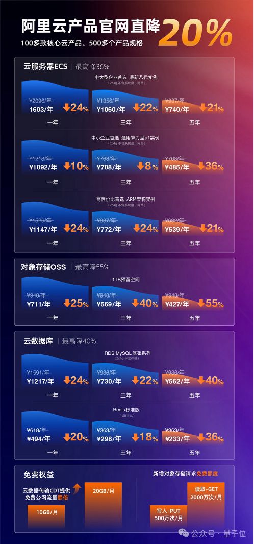 其中,云服務器ECS最高降36%,對象存儲OSS最高降55%,云數(shù)據(jù)庫RDS最高降40%。