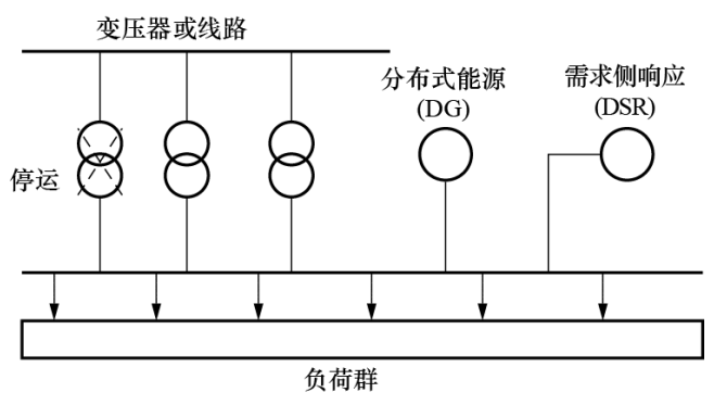 文獻(xiàn)[8]在現(xiàn)有設(shè)計(jì)標(biāo)準(zhǔn)和配電規(guī)劃方法的基礎(chǔ)上,提出了一個(gè)評估需求側(cè)響應(yīng)(DSR)提高配網(wǎng)安全運(yùn)行能力的新方法:首先隨機(jī)選擇DSR方案的運(yùn)行域,其次用解析法計(jì)算與各方案對應(yīng)的可靠性指標(biāo),在此基礎(chǔ)上評估DSR的容量價(jià)值,最后在滿足可靠性與經(jīng)濟(jì)性要求之間找到一個(gè)折中的解決方案。