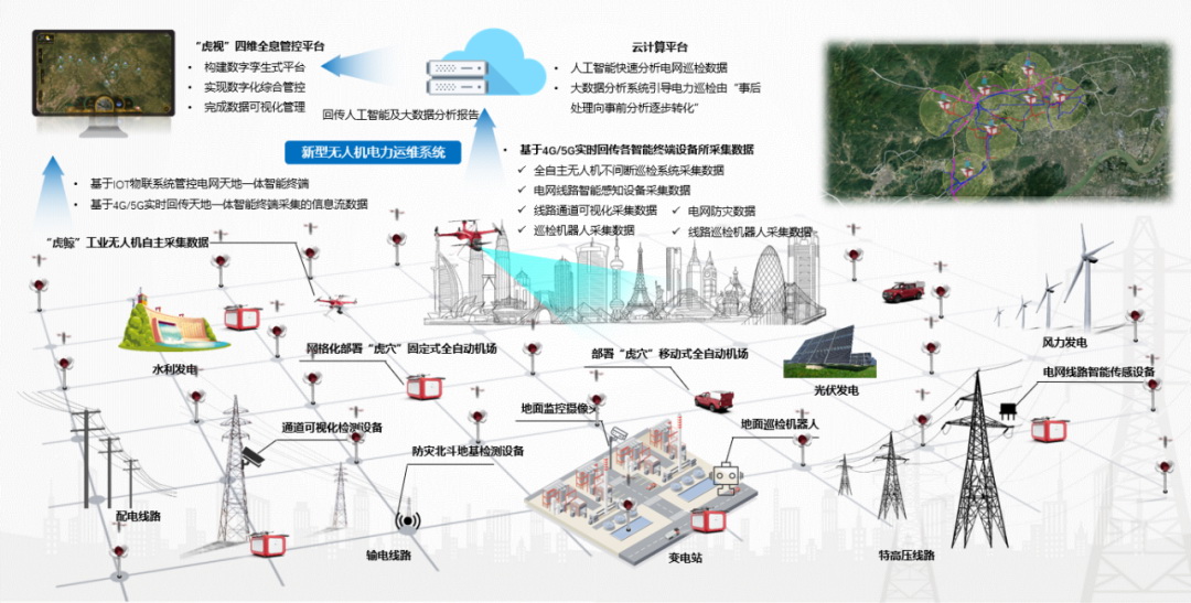 無人機(jī)及全自動(dòng)機(jī)場系統(tǒng)可以實(shí)現(xiàn)網(wǎng)格化、集群化部署,通過基于PMS3.0設(shè)備管理體系的四維全息管控平臺(tái)和全自主無人機(jī)、全自動(dòng)機(jī)場組成的智能化不間斷電力巡檢系統(tǒng),統(tǒng)一集中管控調(diào)度,全面實(shí)現(xiàn)全自動(dòng)機(jī)場之間的蛙跳、對飛、同步作業(yè)等集群作業(yè)模式,高效完成作業(yè)任務(wù)。全面助力電網(wǎng)“數(shù)字新基建”建設(shè),為電網(wǎng)輸、變、配場景保電工作提供7×24小時(shí)不間斷有力巡檢支撐,為電力的安全與穩(wěn)定保駕護(hù)航,最終實(shí)現(xiàn)電力巡檢工人足不出戶,即可全自主不間斷地完成電力智能巡檢,一鍵獲取電力巡檢報(bào)告。
