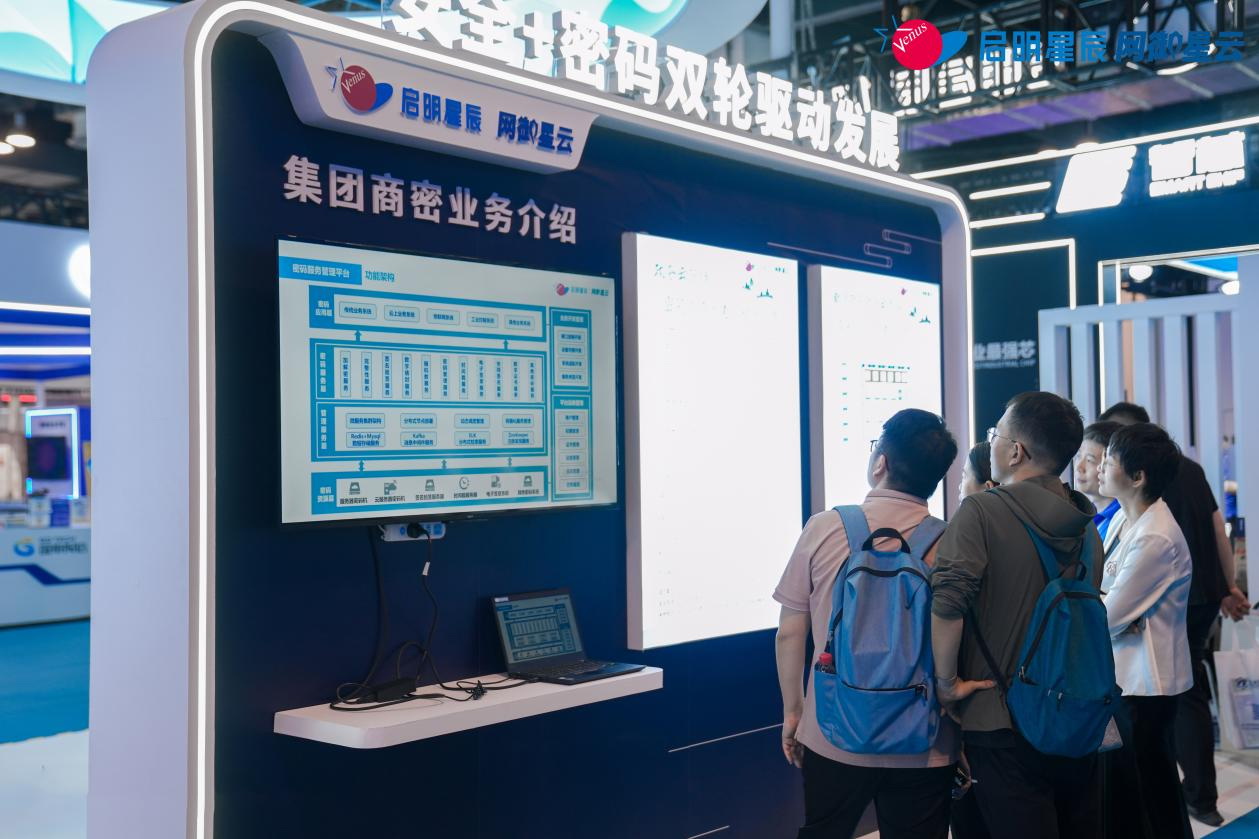 本次展會(huì)上,啟明星辰集團(tuán)集中展示了其在商用密碼應(yīng)用安全領(lǐng)域的產(chǎn)品矩陣與創(chuàng)新實(shí)踐,包括密碼服務(wù)管理平臺(tái)、密鑰管理系統(tǒng)、云服務(wù)器密碼機(jī)、服務(wù)器密碼機(jī)、簽名驗(yàn)簽服務(wù)器、電子簽章系統(tǒng)、數(shù)據(jù)透明加解密系統(tǒng)等市場(chǎng)主流商用密碼產(chǎn)品,及零信任SDP安全網(wǎng)關(guān)、高性能VPN安全網(wǎng)關(guān)、量子VPN安全網(wǎng)關(guān)等諸多新型密碼安全工程實(shí)踐,吸引眾多與會(huì)領(lǐng)導(dǎo)、行業(yè)專家、觀展嘉賓等駐足交流。