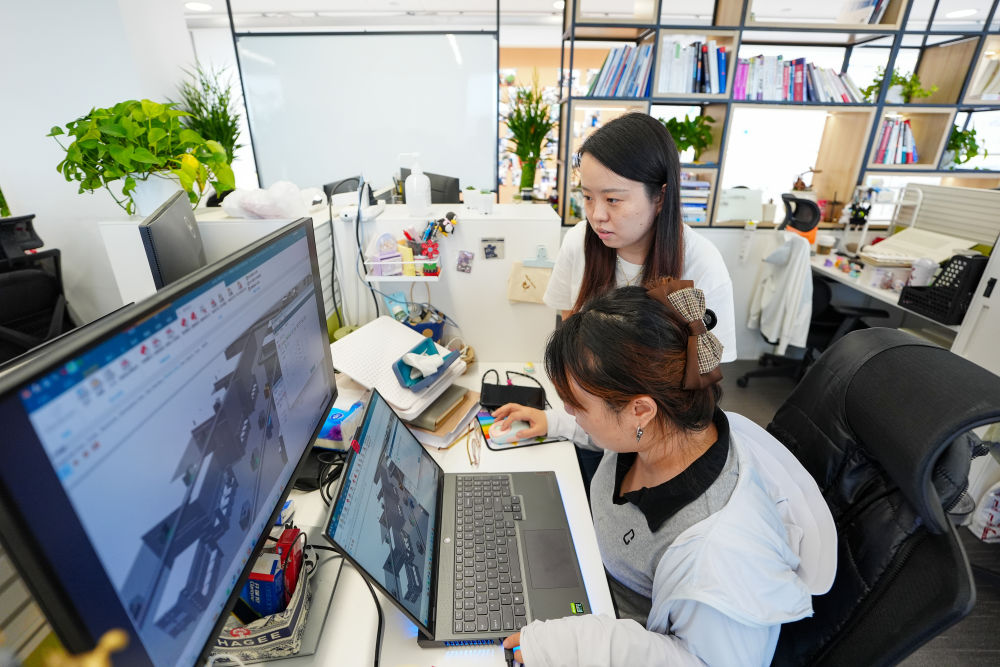 2024年8月26日,中國(guó)電子院工作人員在討論某先進(jìn)半導(dǎo)體項(xiàng)目物流仿真方案