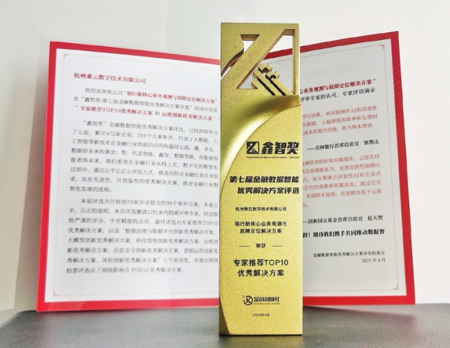 “鑫智獎(jiǎng)”作為金融數(shù)據(jù)智能領(lǐng)域的重要獎(jiǎng)項(xiàng),已連續(xù)舉辦七屆,致力于挖掘并推廣金融科技與數(shù)據(jù)智能深度融合的優(yōu)秀成果,彰顯數(shù)據(jù)智能在金融場(chǎng)景中的落地成效和未來(lái)潛力。2025年評(píng)選活動(dòng)共計(jì)收到來(lái)自70家企業(yè)的99個(gè)方案參評(píng),經(jīng)過(guò)27位專家評(píng)審與答辯打分,評(píng)選出專家推薦TOP10優(yōu)秀解決方案。乘云數(shù)字此次獲獎(jiǎng)的“專家推薦TOP10優(yōu)秀解決方案”,圍繞國(guó)內(nèi)銀行新一代核心系統(tǒng)的復(fù)雜性面臨的全新運(yùn)行穩(wěn)定性挑戰(zhàn),在快速的發(fā)現(xiàn)問(wèn)題、定位問(wèn)題、處理問(wèn)題及大模型新技術(shù)的應(yīng)用等方面展現(xiàn)出專業(yè)、系統(tǒng)的技術(shù)優(yōu)勢(shì),獲得專家組高度認(rèn)可。