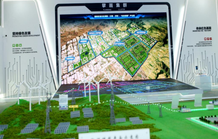 在展示區(qū)中心位置擺放的東數(shù)西算產(chǎn)業(yè)園區(qū)模擬沙盤上,一個個風(fēng)力發(fā)電機和光伏發(fā)電基地格外吸引眼球,通過一座座銀色電網(wǎng)鐵塔與產(chǎn)業(yè)園區(qū)緊密相連,為園區(qū)產(chǎn)業(yè)發(fā)展提供源源不斷地清潔電力能源。同時,墻上的電子屏幕滾動播放著“數(shù)字經(jīng)濟招商企業(yè)一覽表”,顯示已有53家企業(yè)簽約。