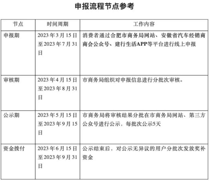 記者從合肥市人民政府獲悉,為貫徹落實(shí)2023年《合肥市人民政府辦公室關(guān)于印發(fā)合肥市“提信心拼經(jīng)濟(jì)”若干政策措施的通知》中第3條促進(jìn)新能源汽車(chē)消費(fèi)補(bǔ)助政策,根據(jù)合肥市政府批復(fù)同意的促進(jìn)新能源汽車(chē)消費(fèi)條款實(shí)施工作方案,特發(fā)布申報(bào)通知如下:
