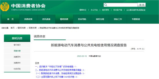 受訪者認(rèn)為公共充電樁的各項滿意度 中國消費者協(xié)會網(wǎng)站截圖