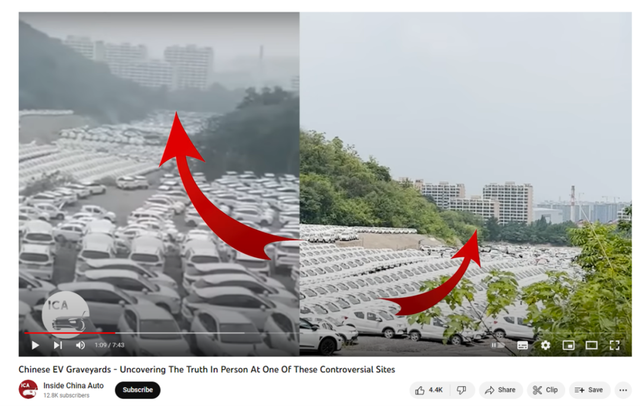 近段時間,推特、Youtube等社交平臺上廣泛流傳說法稱,“中國對電動汽車投資過度”“中國正在丟棄大量汽車,任其腐爛”、“浪費”。有關(guān)說法通常配有圖片或視頻,顯示在雜草叢中停放著上百輛汽車。