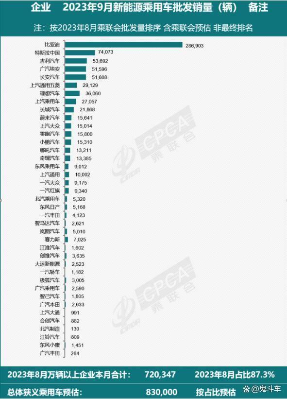 10月8日,“崔東樹”公眾號發(fā)布乘聯(lián)會(huì)2023年9月新能源乘用車廠商批發(fā)銷量快訊。從這份數(shù)據(jù)中看到,9月份,新能源市場還是處于增長狀態(tài),但整體增幅并不沒有想象中那么高歌猛進(jìn)。
