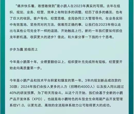 農(nóng)歷新年復(fù)工后的一個(gè)月的時(shí)間里,是新能源行業(yè)HR最忙的一段時(shí)間之一,“搶人大戰(zhàn)”一觸即發(fā)。彼時(shí),不少車企的員工在年終獎(jiǎng)到手后開始尋找新的工作機(jī)會(huì),而造車新勢(shì)力小鵬更是抓住這一關(guān)鍵時(shí)期直接在開工信中表示2024年要新招聘4000人,再發(fā)兩款新車以實(shí)現(xiàn)業(yè)績翻倍。