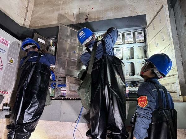 6月22日下午,南方電網(wǎng)廣西欽州浦北供電局黨員突擊隊(duì)在桂林市興進(jìn)漓江壹號(hào)小區(qū)地下室更換配電開關(guān)。羅陽攝
