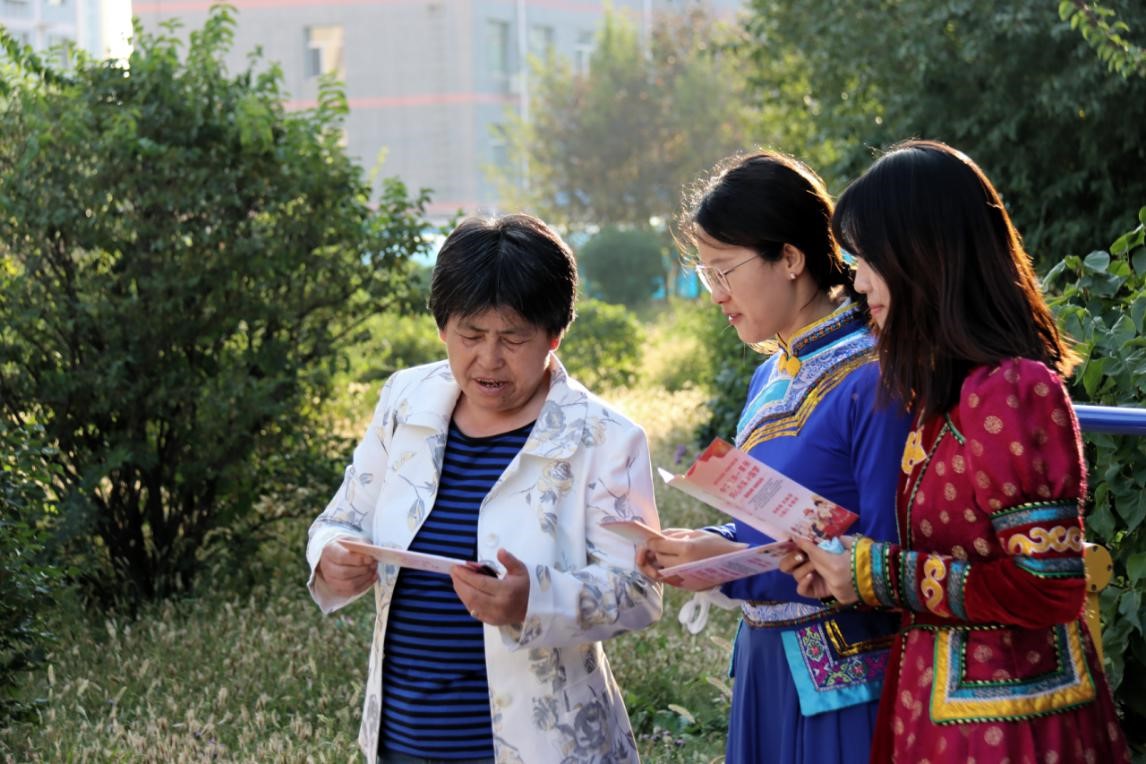 活動中,黨員同志們集中開展黨的民族理論政策宣傳,生動形象闡述民族團(tuán)結(jié)、“三個(gè)離不開”、“四個(gè)不動搖”等民族政策,進(jìn)一步增強(qiáng)社區(qū)居民對中華民族這一共有身份的認(rèn)同感、歸屬感和責(zé)任感,拉近各民族情感,凝聚民族團(tuán)結(jié)進(jìn)步正能量。生動有趣的活動現(xiàn)場吸引了社區(qū)里眾多群眾的廣泛參與,身著蒙古族服飾的宣講員在夕陽的映射下顯得格外美麗。