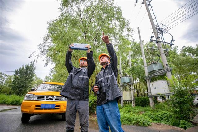 國網(wǎng)江蘇南通供電公司員工冒雨檢查閘口用電設(shè)備,確保安全運(yùn)行。