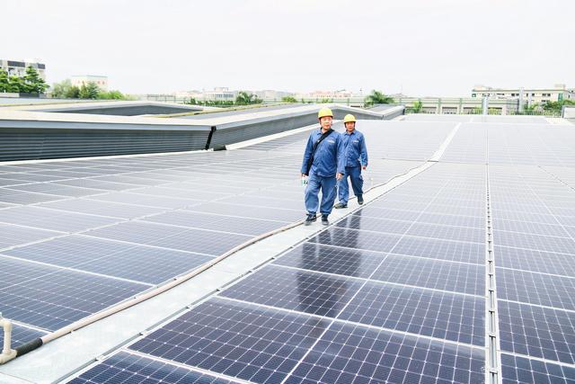 南方電網廣東東莞供電局工作人員為企業(yè)新裝的光伏發(fā)電項目服務,助力企業(yè)綠色低碳發(fā)展。鐘肖如 攝