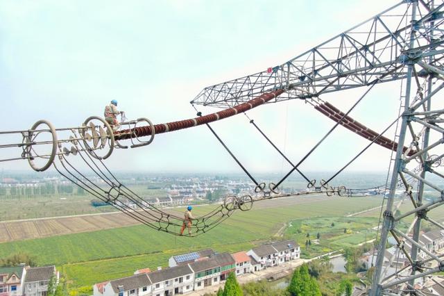 國網(wǎng)上海電力運檢人員開展±800千伏復(fù)奉線年度檢修。