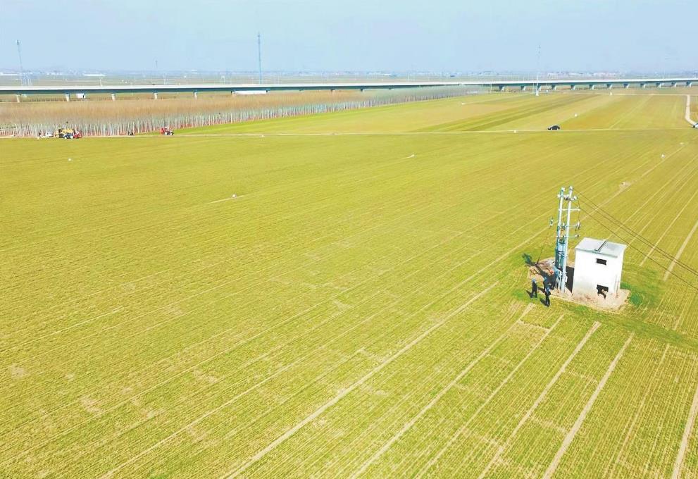 2月27日,河南省滑縣白馬坡高標(biāo)準(zhǔn)農(nóng)田里,供電員工在特巡涉農(nóng)供電設(shè)施,保障農(nóng)戶春灌可靠用電。王亞方 攝