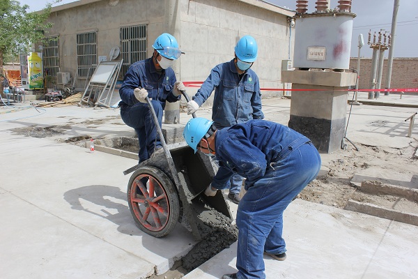 中國電力網(wǎng)訊 “快拉一車混凝土過來,這里還需要一車,大家都把混凝土鏟平了”,4月22日,新疆生產(chǎn)建設(shè)兵團第一師電力有限責任公司輸變電工區(qū)組織職工自己動手美化家園,員工們都拿著鐵鍬、刮刀等工具在院內(nèi)修補地坪,讓家園更美、更靚。
