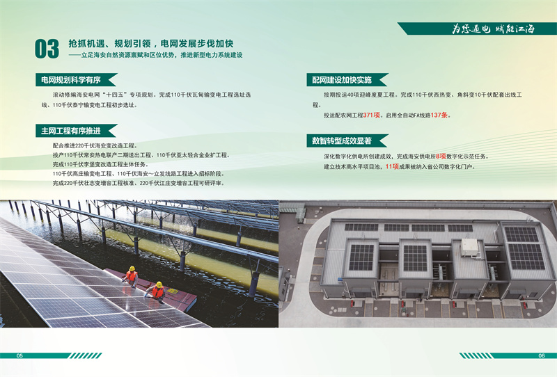 《白皮書》披露,2023年,該公司組織召開海安市迎峰度夏保供工作會議,深挖非工空調(diào)負(fù)荷調(diào)控潛力,促請政府出臺需求響應(yīng)、非工負(fù)荷調(diào)節(jié)能力建設(shè)等支持政策。堅(jiān)持“杜絕增量、清除存量”原則,拆除1000千伏泰吳線下方違規(guī)大棚。滾動修編海安電網(wǎng)“十四五”專項(xiàng)計(jì)劃,主網(wǎng)工程有序推進(jìn)。深化數(shù)字化供電所創(chuàng)建成效,完成8項(xiàng)數(shù)字化示范任務(wù)。11項(xiàng)成果被納入省公司數(shù)字化門戶。完成發(fā)明專利授權(quán)4項(xiàng)、成果轉(zhuǎn)化2項(xiàng),年度QC項(xiàng)目榮獲市公司一等獎。深化“開門接電”示范區(qū)建設(shè),全面省級以上園區(qū)全覆蓋,成立重大項(xiàng)目服務(wù)小組,服務(wù)萬噸冷鏈等14個省市級重大項(xiàng)目接電。公司員工助學(xué)殘疾兒童事跡《神秘叔叔,你是誰?》相繼被人民日報、新華社、中國青年報等中央媒體相繼轉(zhuǎn)載。