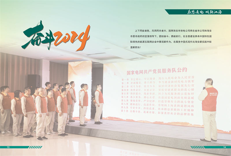 2024年,國網(wǎng)海安市供電公司將在省市公司和海安市委市政府的堅(jiān)強(qiáng)領(lǐng)導(dǎo)下,踔厲奮發(fā)、篤行不怠,扎實(shí)推進(jìn)各項(xiàng)工作任務(wù),在全面建設(shè)具有中國特色國際領(lǐng)先的能源互聯(lián)網(wǎng)企業(yè)中展現(xiàn)新作為,在服務(wù)中國式現(xiàn)代化海安新實(shí)踐中彰顯新?lián)?dāng)!