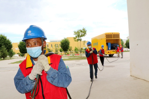 中國電力網(wǎng)訊 “這次演練模擬由于大雨天氣造成學(xué)校供電線路跳閘,保電人員啟動應(yīng)急發(fā)電車對特克斯縣高考點執(zhí)行保供電……”7月2日,在特克斯縣第二高級中學(xué),國網(wǎng)伊犁供電公司黨員服務(wù)隊正在有條不紊地進行高考保電應(yīng)急演練。