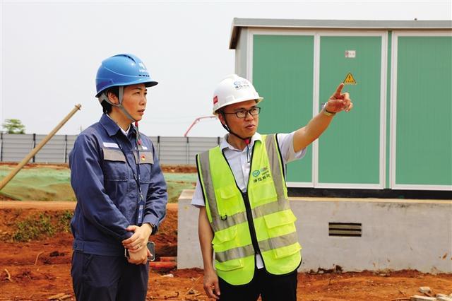 南方電網(wǎng)海南電網(wǎng)公司客戶經(jīng)理到海南醫(yī)學(xué)院桂林洋校區(qū)一期項(xiàng)目施工現(xiàn)場(chǎng)走訪。楊永光 攝