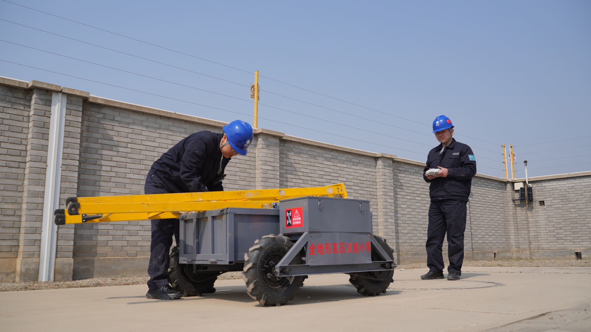 作業(yè)人員操作全地形高壓試驗(yàn)小車運(yùn)輸儀器(沈佳明 攝)