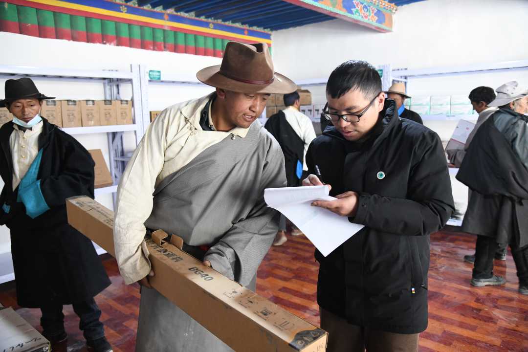 據(jù)介紹,“電力愛(ài)心超市”作為“國(guó)網(wǎng)賦能鄉(xiāng)村工程·愛(ài)心助農(nóng)行動(dòng)”公益牌中的重點(diǎn)項(xiàng)目,是國(guó)家電網(wǎng)公司積極承擔(dān)央企社會(huì)責(zé)任,積極服務(wù)鄉(xiāng)村振興、促進(jìn)鄉(xiāng)風(fēng)文明的又一項(xiàng)重要舉措。不同于用現(xiàn)金交易,“電力愛(ài)心超市”采用的是積分兌換物品。村民以戶(hù)為單位,通過(guò)參與國(guó)網(wǎng)西藏電力駐村“第一書(shū)記”和村“兩委”定期組織開(kāi)展的黨建宣傳、培訓(xùn)學(xué)習(xí)、鄉(xiāng)風(fēng)建設(shè)、鄉(xiāng)村治理、電動(dòng)農(nóng)機(jī)具技術(shù)推廣等活動(dòng)獲取相應(yīng)的積分額度,再用所獲得的積分在超市兌換等分值的物品。