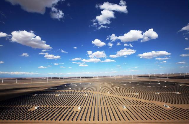 正值進入小寒,在新疆東部的哈密十三間房,勁風飛馳,一座座潔白的大型風機不停歇地旋轉(zhuǎn)。在新疆南部的塔克拉瑪干沙漠,晴空萬里,一片片亮閃閃的光伏電池板如中央空調(diào)一樣,正在向塞外遠方輸送著綠色“暖氣”。