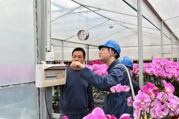 “我算了一下,在大棚里安裝上空調(diào)后,蝴蝶蘭不用再‘上山’,幫我節(jié)省成本至少80%。”苗戰(zhàn)軍在陳村種植蝴蝶蘭已有七八年時間,每到催花期,陳村的蝴蝶蘭都要集體“上山”,去韶關等符合溫差條件的區(qū)域“催花”。 當陳村供電所為蝴蝶蘭種植基地實現(xiàn)2400千瓦的供電增容后,花農(nóng)們大面積推廣大棚種植,利用空調(diào)嚴格控制溫差,實現(xiàn)了蝴蝶蘭的就地“催花”,蝴蝶蘭的“催花”成本從1.8元/株降至1元/株左右。