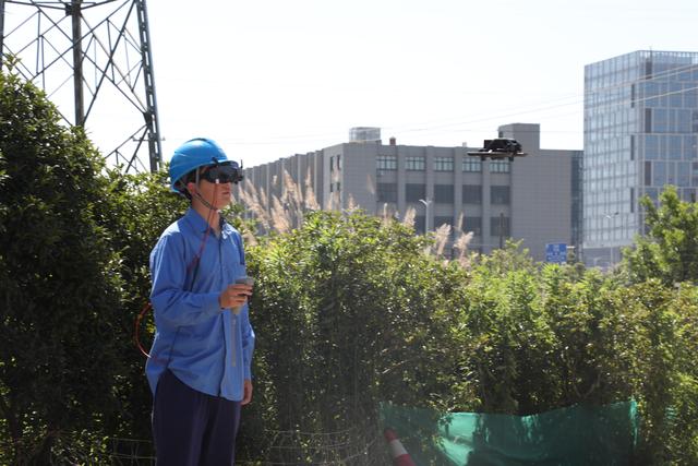 圖為工作人員應(yīng)用飛行眼鏡操控?zé)o人機(jī),對(duì)配電線路開(kāi)展沉浸式巡線。新華社發(fā)(邵哲文 攝)