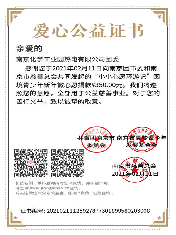經(jīng)過前期的調研了解,南京市仍有很多青少年處于困境,他們在新的一年也有屬于自己的小夢想、小心愿,在南京市團市委、南京市民政局、南京市希望工程辦公室的牽頭主辦下,“2020-2021年暖冬行動暨小小心愿環(huán)游記”已拉開帷幕。公司團委創(chuàng)新工作方法,用義賣取代傳統(tǒng)的捐款,讓大家在收獲新春喜悅的同時,也能給需要幫助的人傳遞溫暖,福氣加倍。